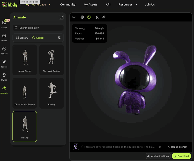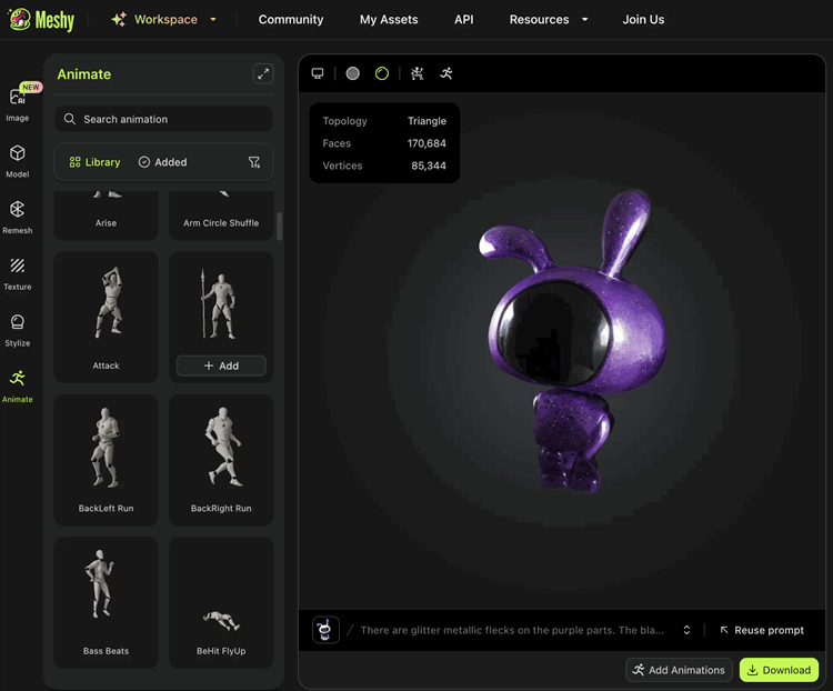 Meshy was super fast and pretty good at understanding prompts and image references and has a bunch of premade animations…